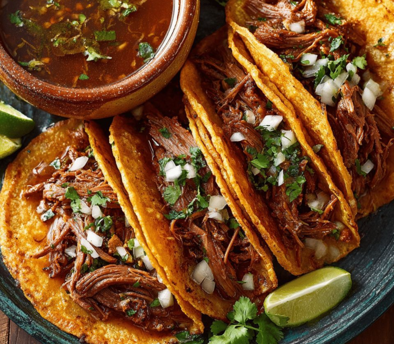 Birria de Brisket (500gr) acompañada de queso ranchero y aguacate