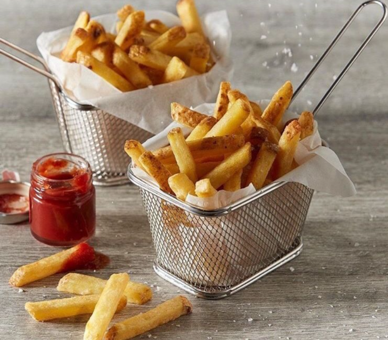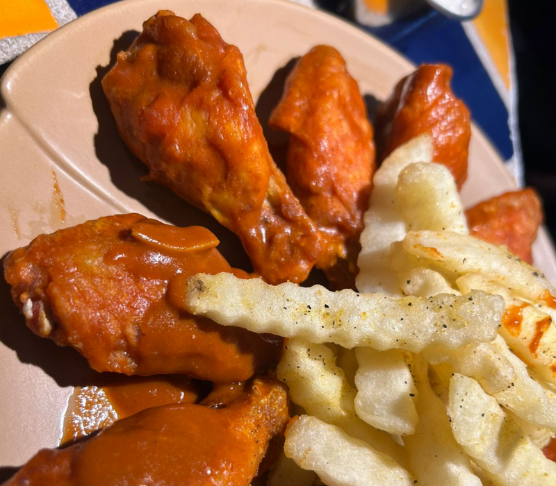 (12pz según tamaño) jugosas alitas, acompañadas de papas a la francesa y aderezo Ranch con salsa a su gusto