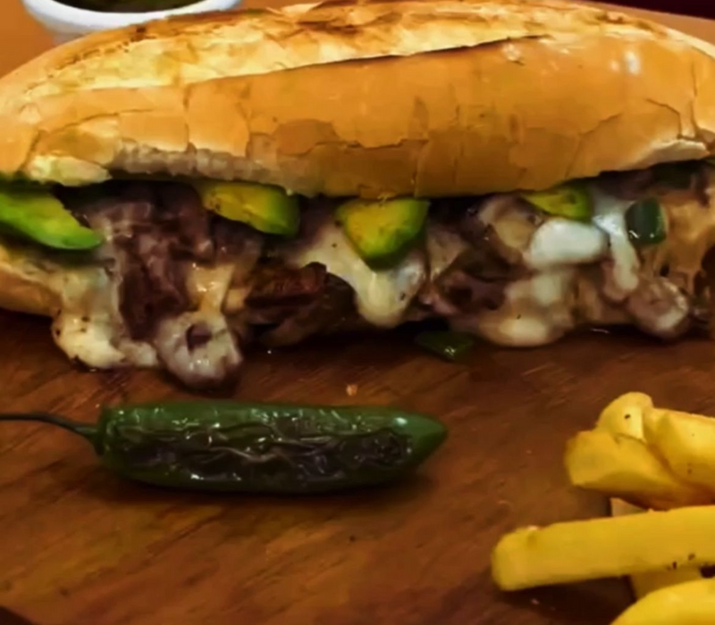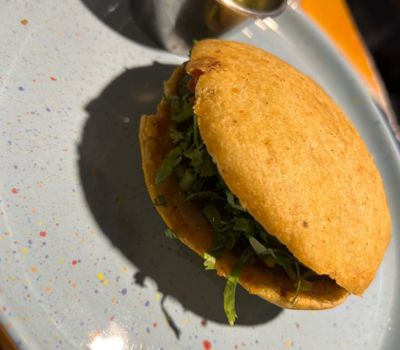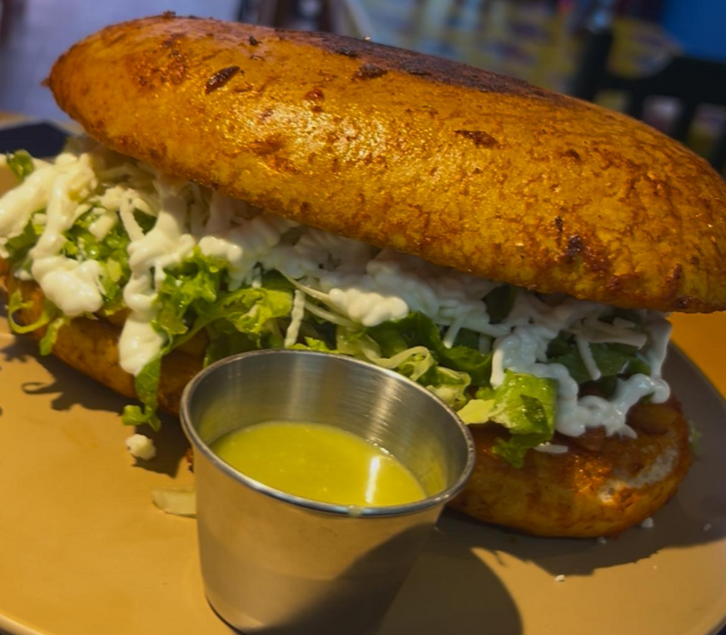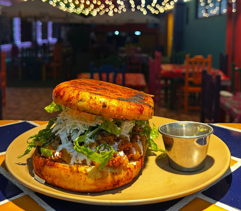 Pambazo tradicional de papa con chorizo y Pulled Pork