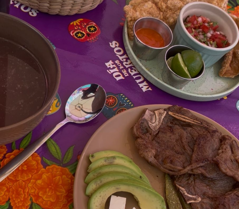 Torerita (gaonera) asada 300gr, cebollitas, nopales, chicharrón, pico de gallo, queso ranchero, frijoles de la olla y tortillas