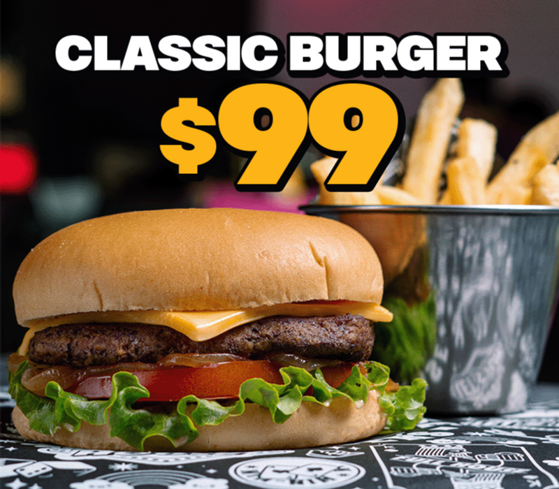 Classic burger + porción de boneless o alitas + papas a la francesa o papas chips.