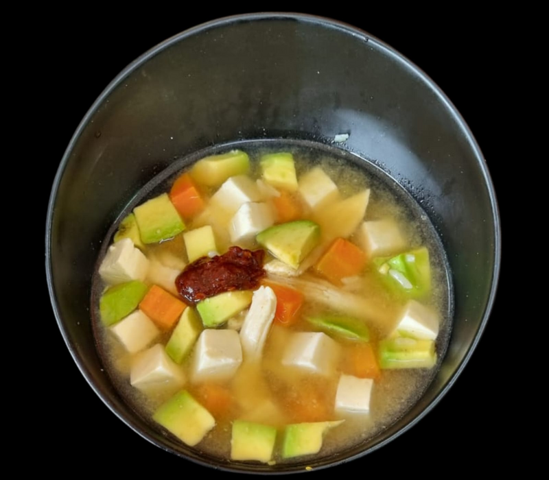 Riquisimo caldo tlalpeño con arroz, queso panela, aguacate, zanahoria, chile cipotle y pechuga de pollo.