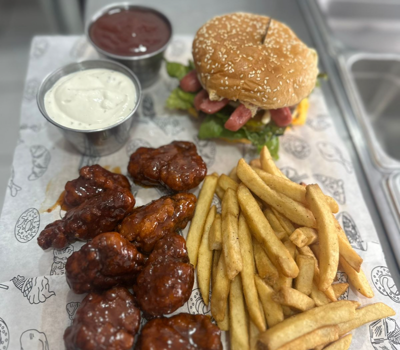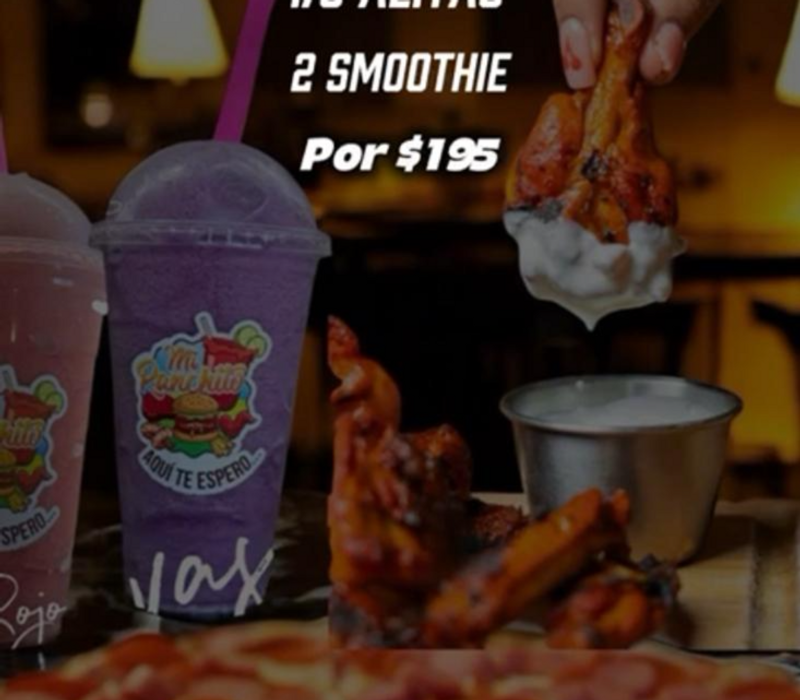 Pizza grande clasica, 1/2 kilo de alitas y 2 smoothies