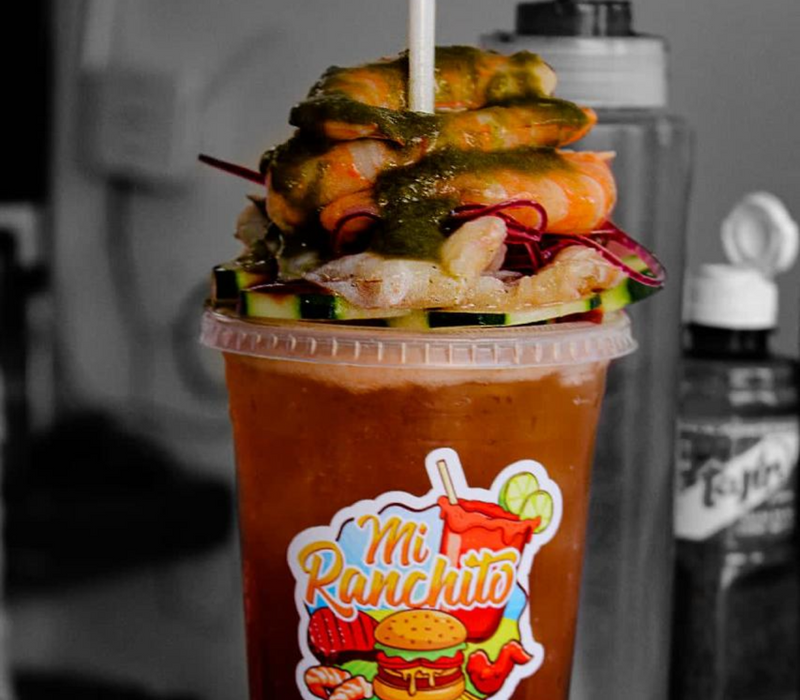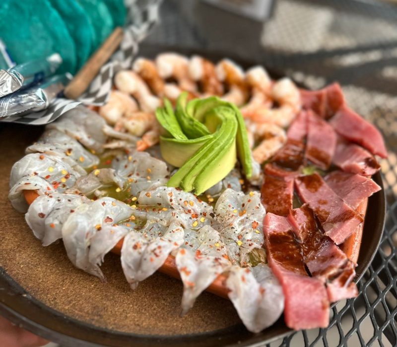 Camarón crudo, camarón cocido y pulpo, en salsa de chile chiltepin