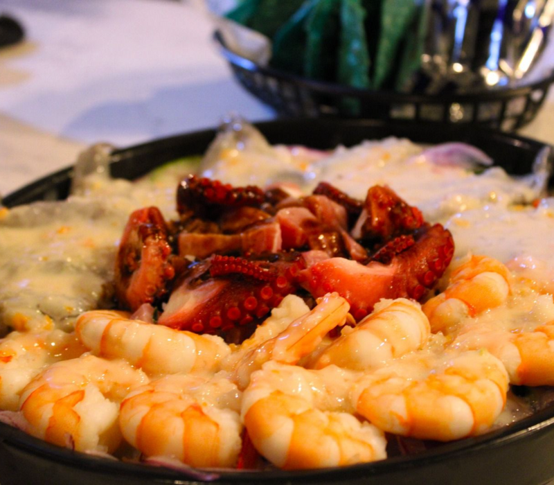 5 Shots Gigantes, Camarón Empanizado, Camarón Crudo, Camarones al Coco, Camarón Cocido, Camarón Zarandeado, Camarones a la Diabla, Atún y Pulpo.