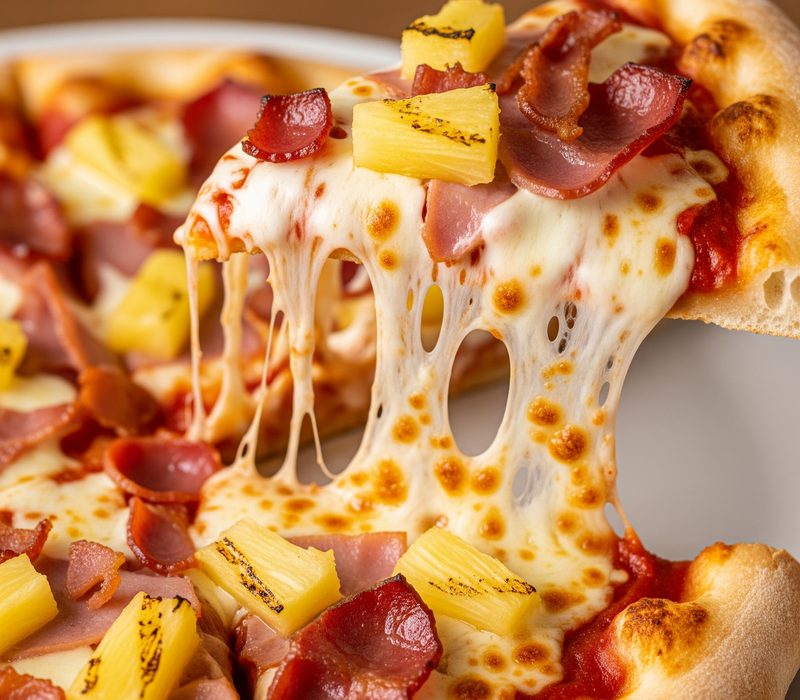 Una explosión de sabor que te transportará a la playa. Deléitate con nuestra masa crujiente, salsa de tomate dulce, queso fundido, jugosos trozos de piña caramelizada y sabrosas lascas de jamón. La combinación perfecta entre dulce y salado para los aventureros del sabor. ¡Pruébala y sorpréndete!