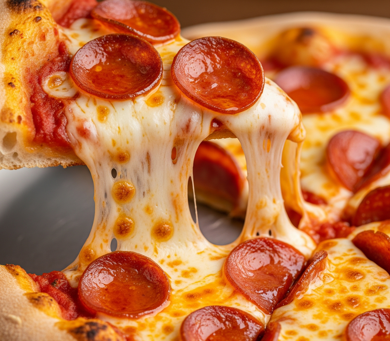 Nuestra pizza más vendida y un favorito indiscutible. Disfruta de una base crujiente, cubierta con una generosa capa de salsa de tomate casera, abundante queso derretido y las inconfundibles rebanadas de pepperoni, que se vuelven ligeramente crujientes en sus bordes al hornearse. ¡Una delicia que nunca falla!