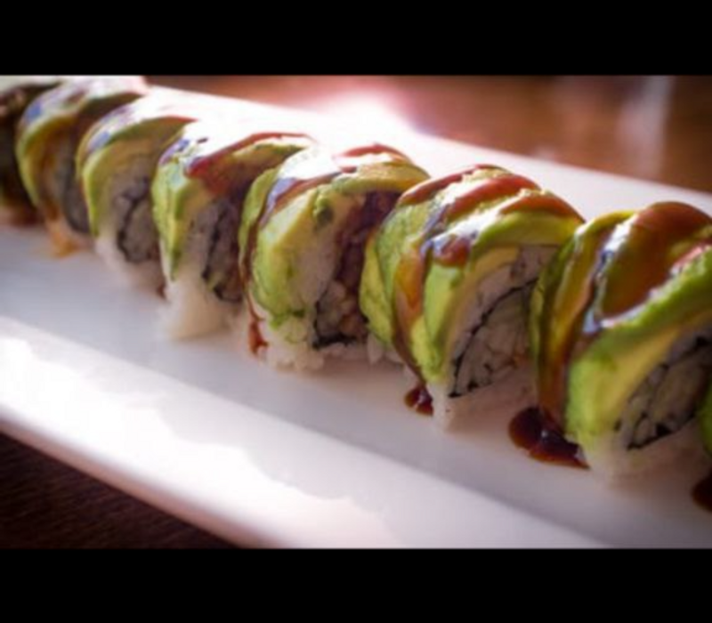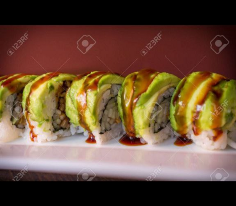 Por fuera: Aguacate, salsa de anguila y ajonjolí espolvoreado