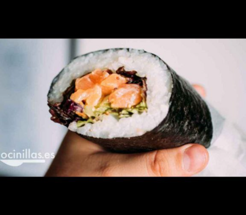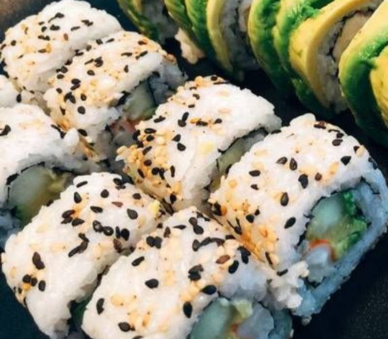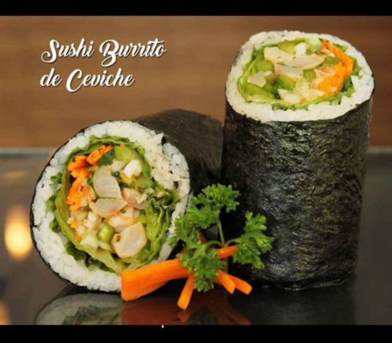 Por dentro: Ajonjolí, lechuga, zanahoria, pepino, aguacate y ceviche