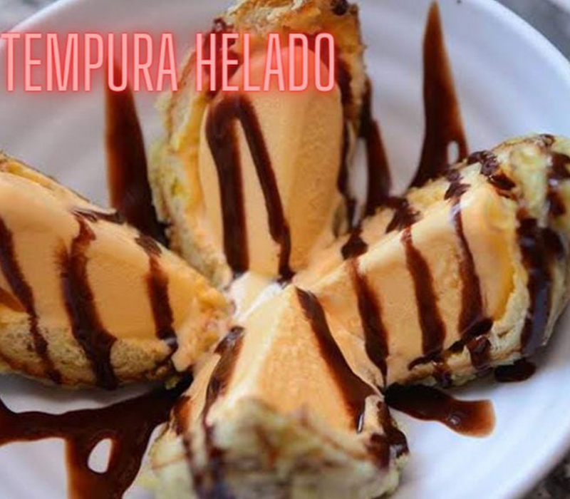 Helado de vainilla frito al tempura y servido con chocolate