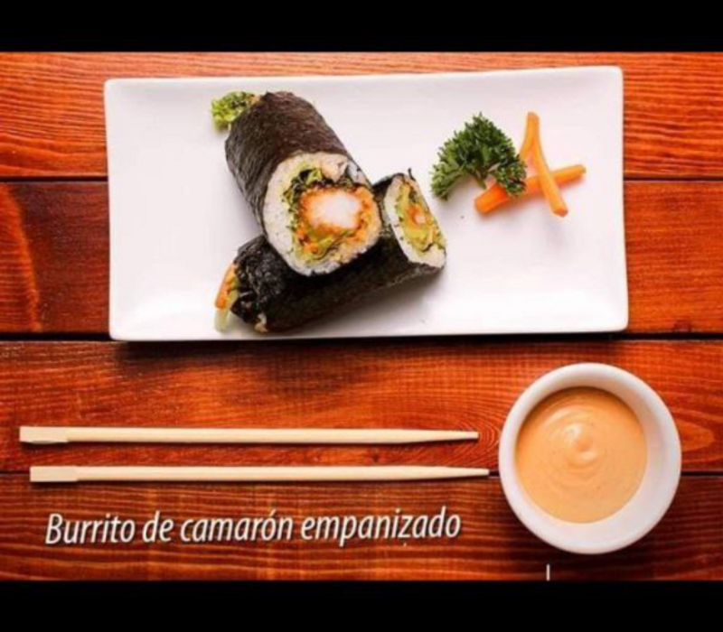 Por dentro: Queso crema, Aguacate, Chile Chipotle caramelizado y camarón empanizado