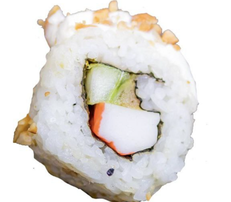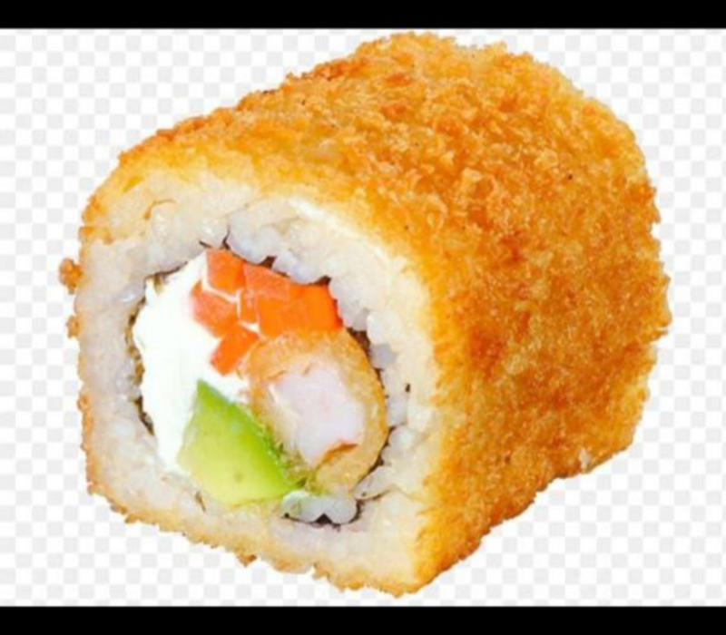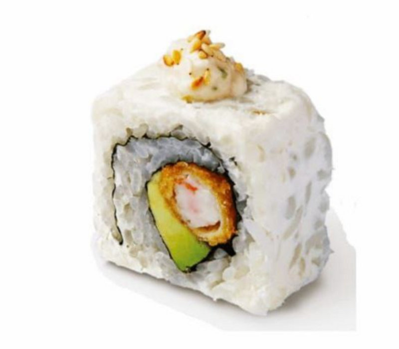 Por dentro: Alga, aguacate, queso gouda, zanahoria y camarón capeado