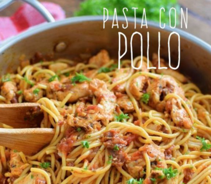 Pasta servida con pollo , zanahoria, brócoli y cebollin salteados con aderezo cremoso de chipotle