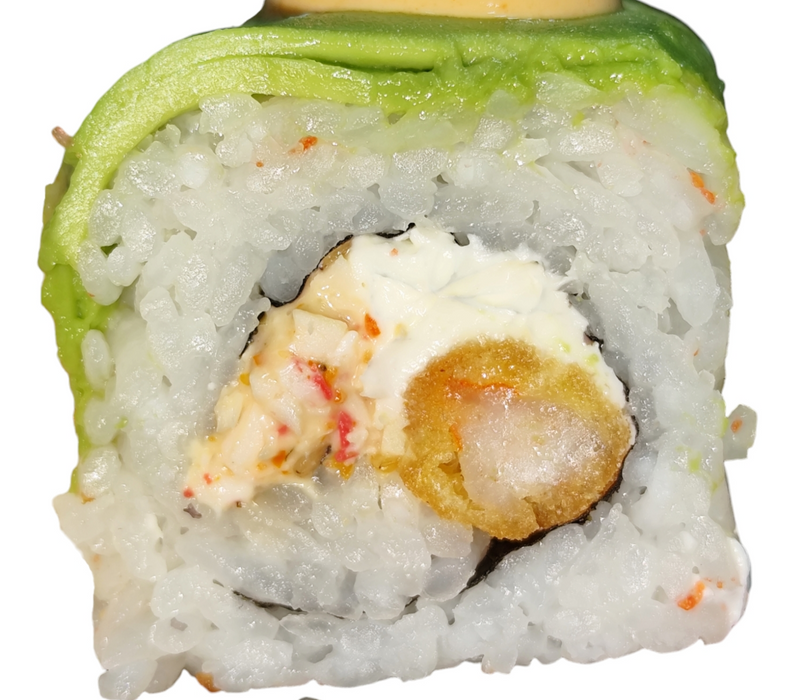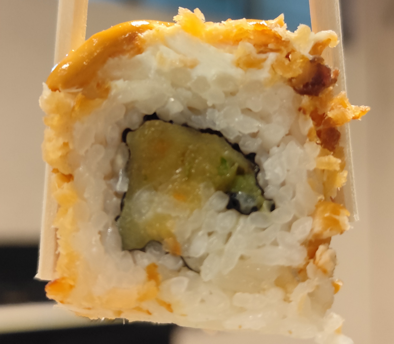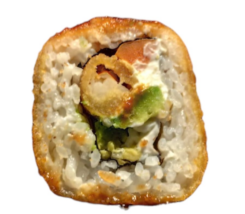 Por dentro: Camarón empanizado, filadelfia y aguacate.
