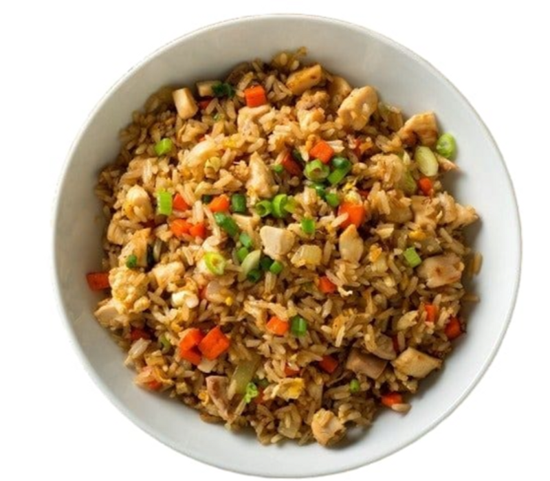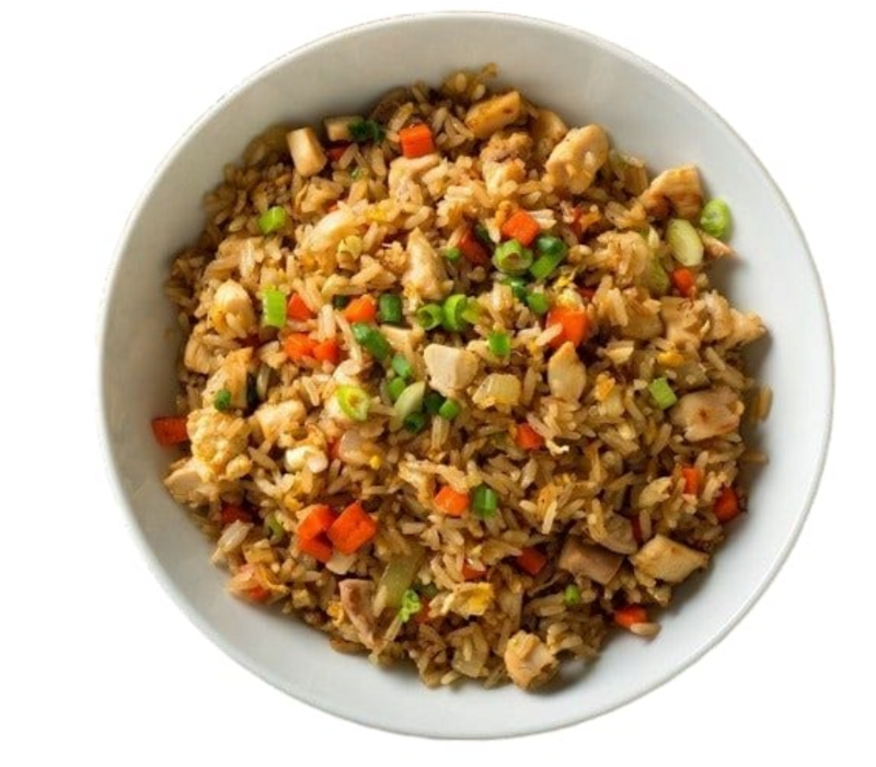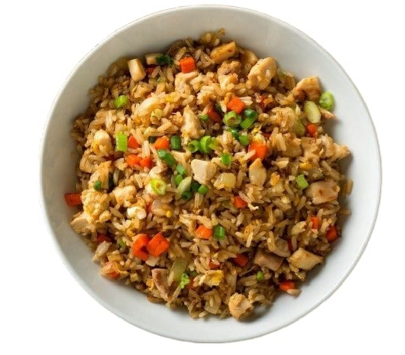 Arroz frito al estilo japonés, salteado con trozos de pollo jugoso, vegetales frescos como zanahoria, cebolla y chícharos, sazonado con salsa de soya y un toque de aceite de ajonjolí.