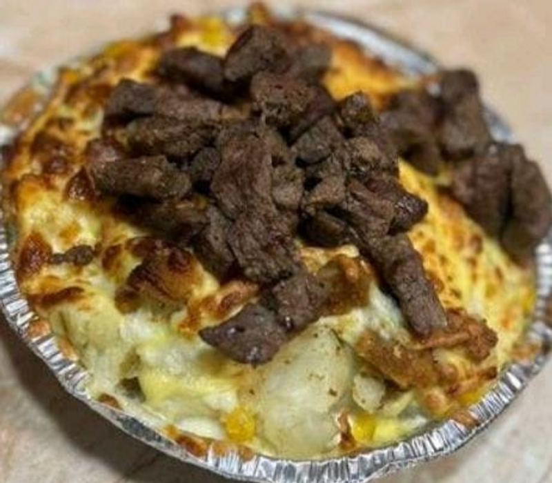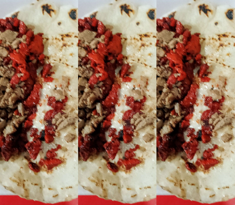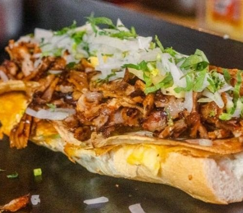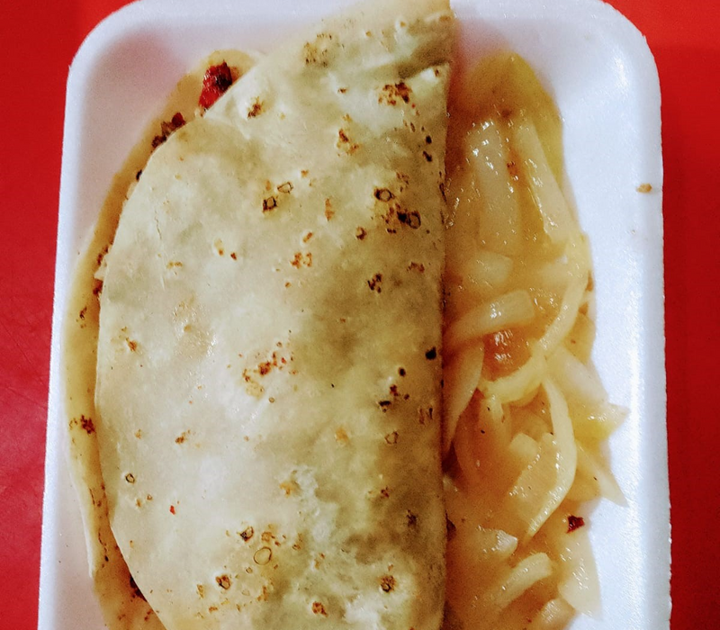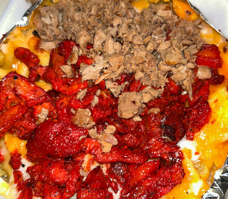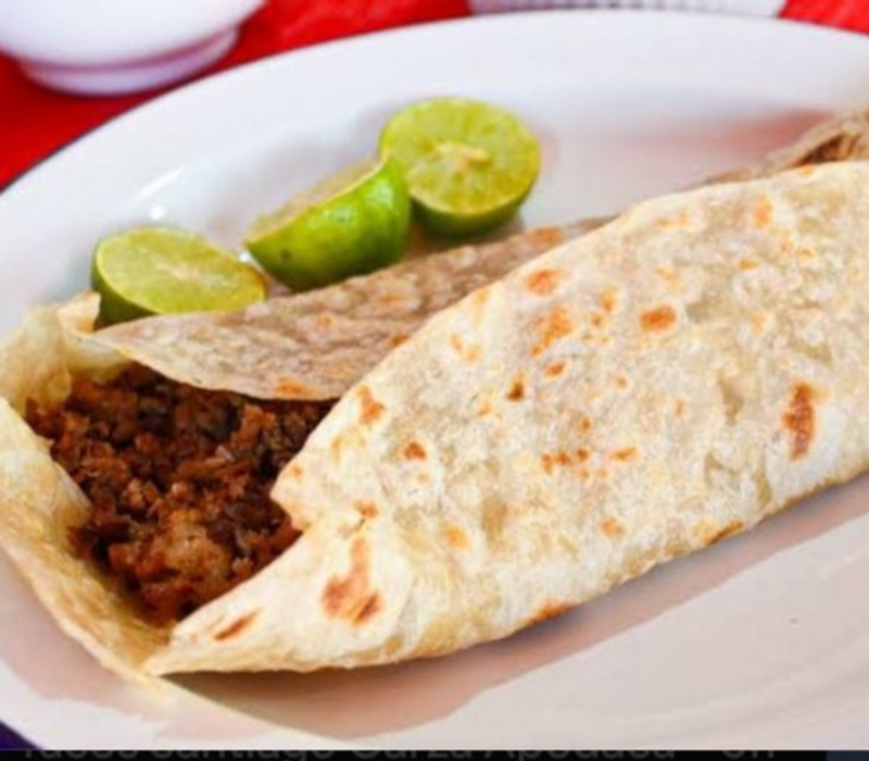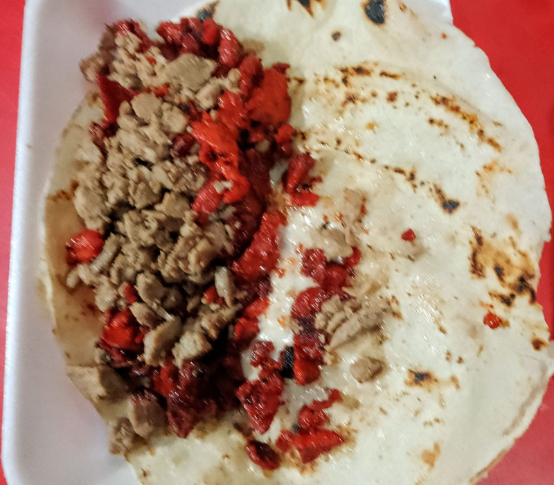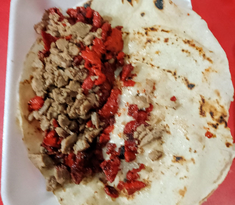 Campechanas de trompo y bistec en tortilla de harina y queso