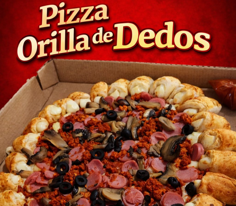 Pizza Grande de 36CM con 8 Rebanadas de Pepperoni, Champiñon & Mezcla de Quesos Premium, incluye 1 bolsa de chimichurri.