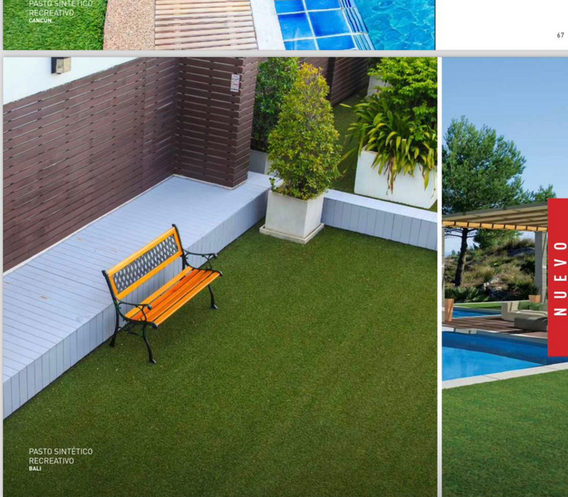 El pasto sintético, también conocido como césped artificial, es un recubrimiento para exteriores que imita la apariencia y textura del césped natural, pero está hecho de materiales sintéticos. Se utiliza para evitar el mantenimiento constante y el uso de agua.