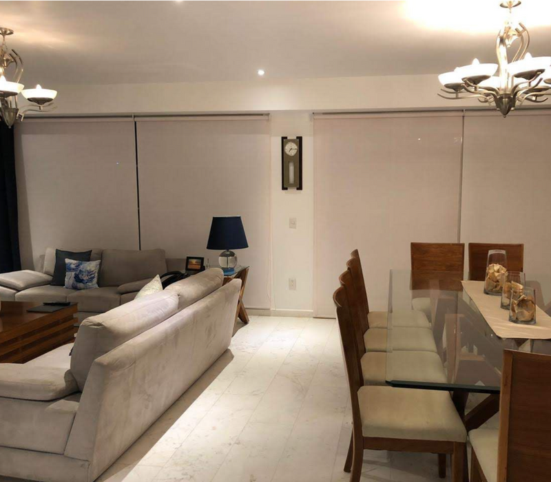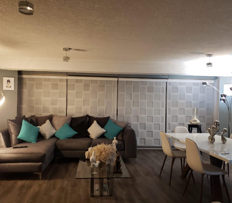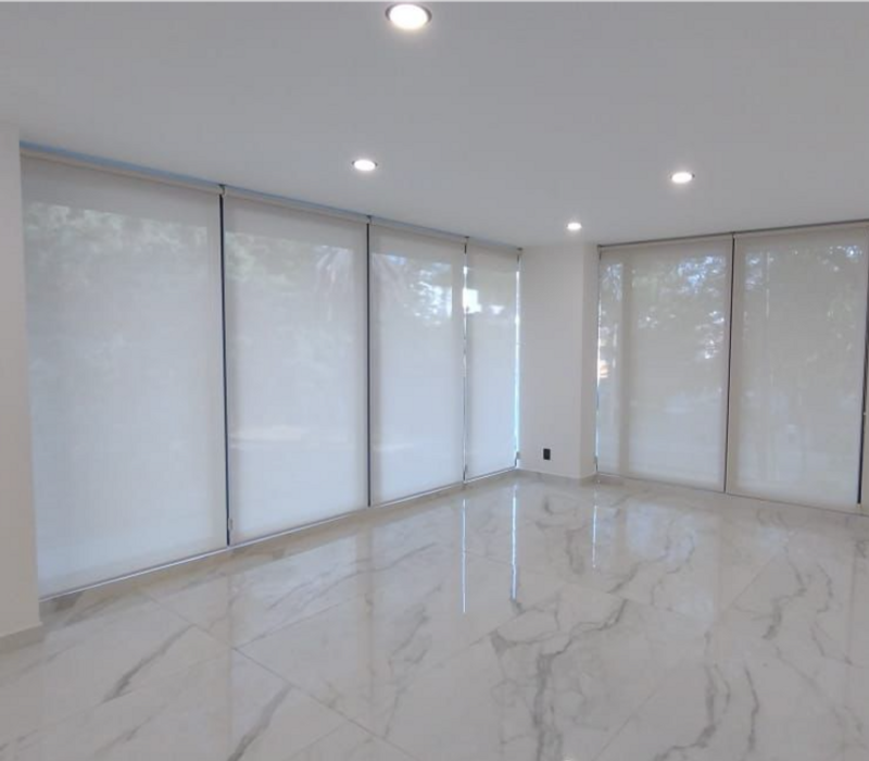 El modelo enrrollable en tela malla de control solar es una opción perfecta para dar amplitud a tus espacios y evitar el paso de rayos uv.