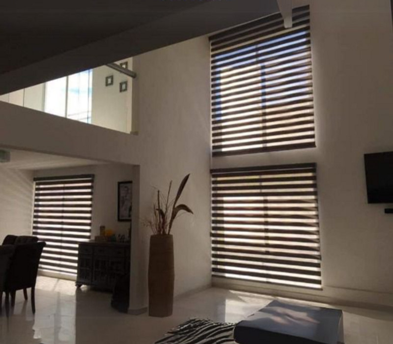 La persiana sheer elegance es un modelo práctico y elegante, consiste en un diseño de franjas horizontales que nos permite ajustar la vista y entrada de luz mientras se enrollan hacia la parte superior a travéz de un sistema manual de cadena o automatizado con un motor.